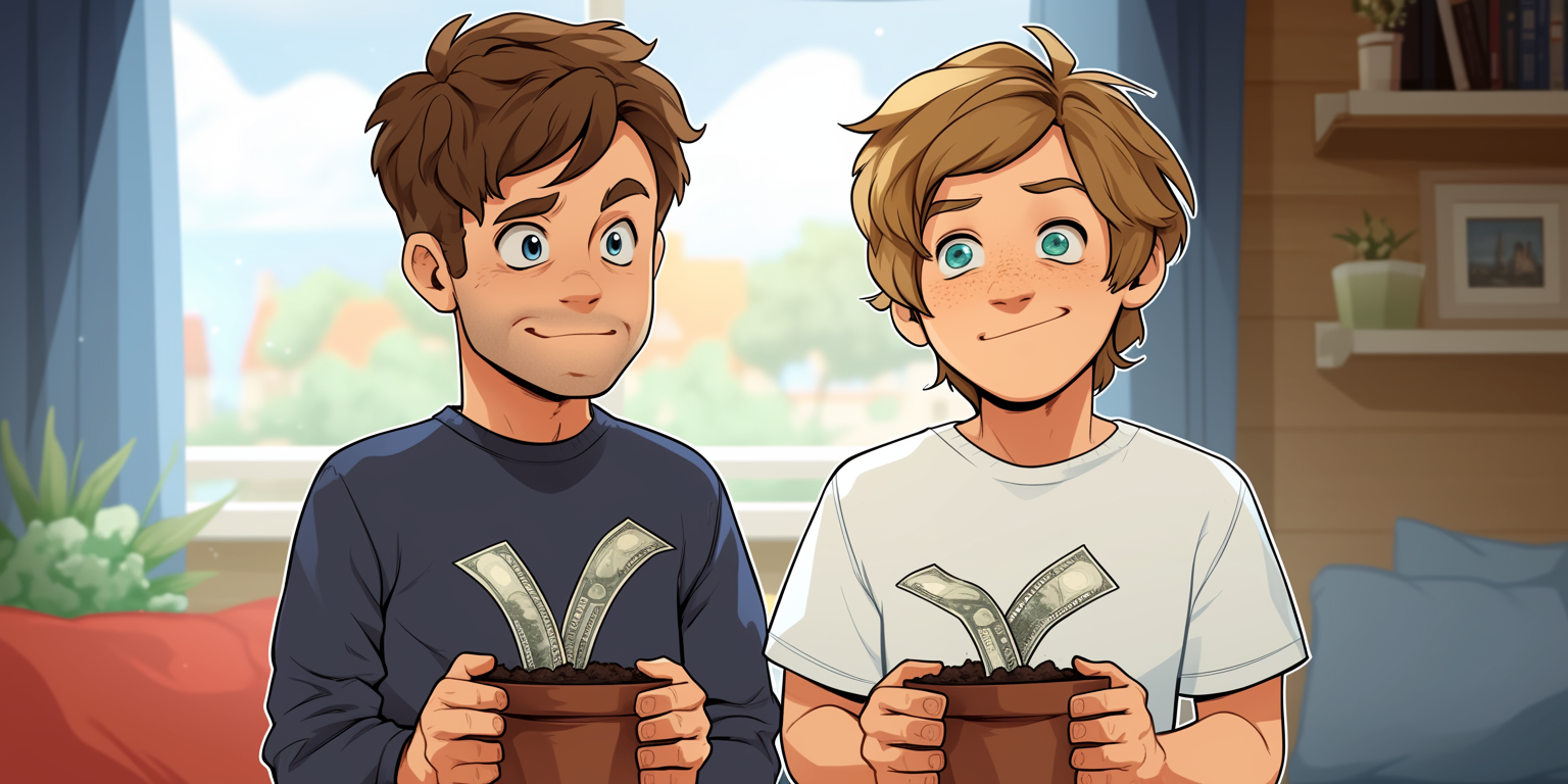Dit is hoe het werkt. Sinds de dag dat je geboren bent in maart 2024 sparen dronkel PJ en ik elke maand elk €5 voor jou. We zullen dit blijven doen tot op jouw twaalfde verjaardag zodat we je dan een gigantisch cadeau kunnen kopen! Dat wil zeggen dat we in totaal \( 12 \times 12 \times 10 = \) €\( 1440 \) gespaard zullen hebben.1
